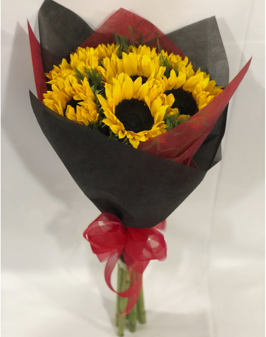 RAMO CON 10 GIRASOLES, PAPEL COREANO, MOÑO